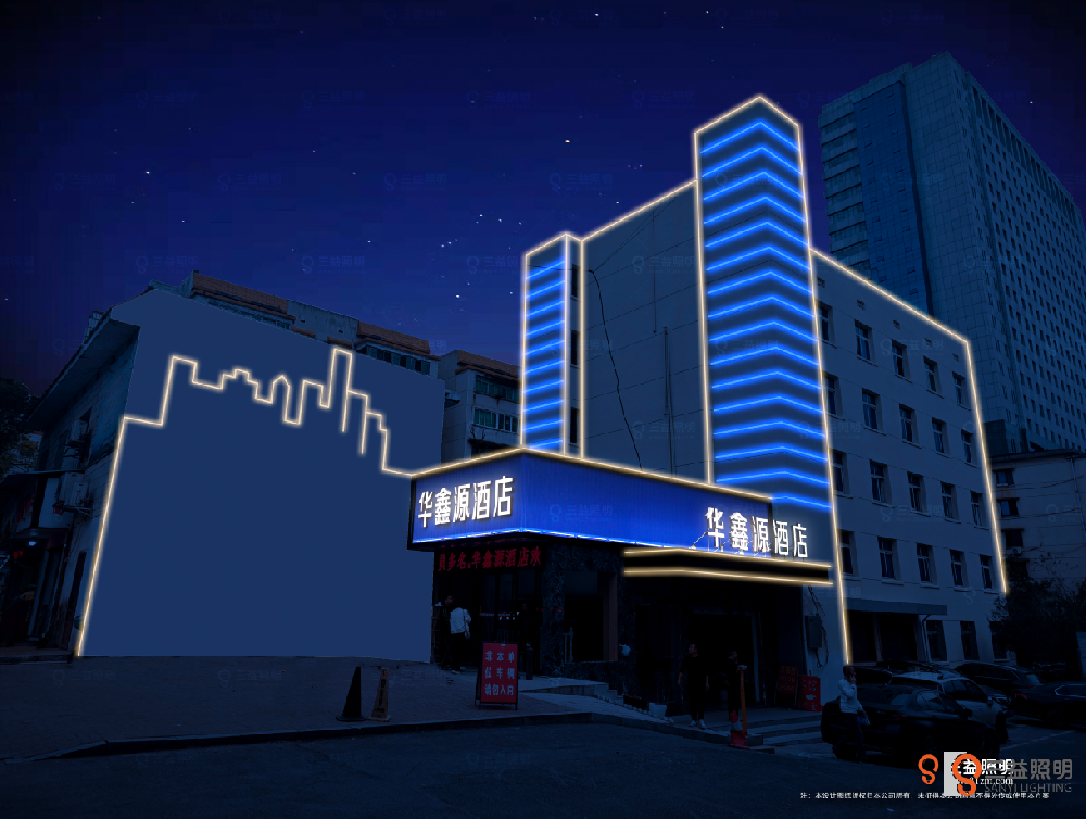 本次設(shè)計采用線條燈方案,按裝樓體特色,合燈光聚集在關(guān)鍵位置,形成焦點,吸引客戶眼球。本公司所有設(shè)計項目均為原創(chuàng),受知識產(chǎn)權(quán)保護(hù)法保護(hù),未經(jīng)本公司同意,請勿抄襲合···